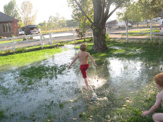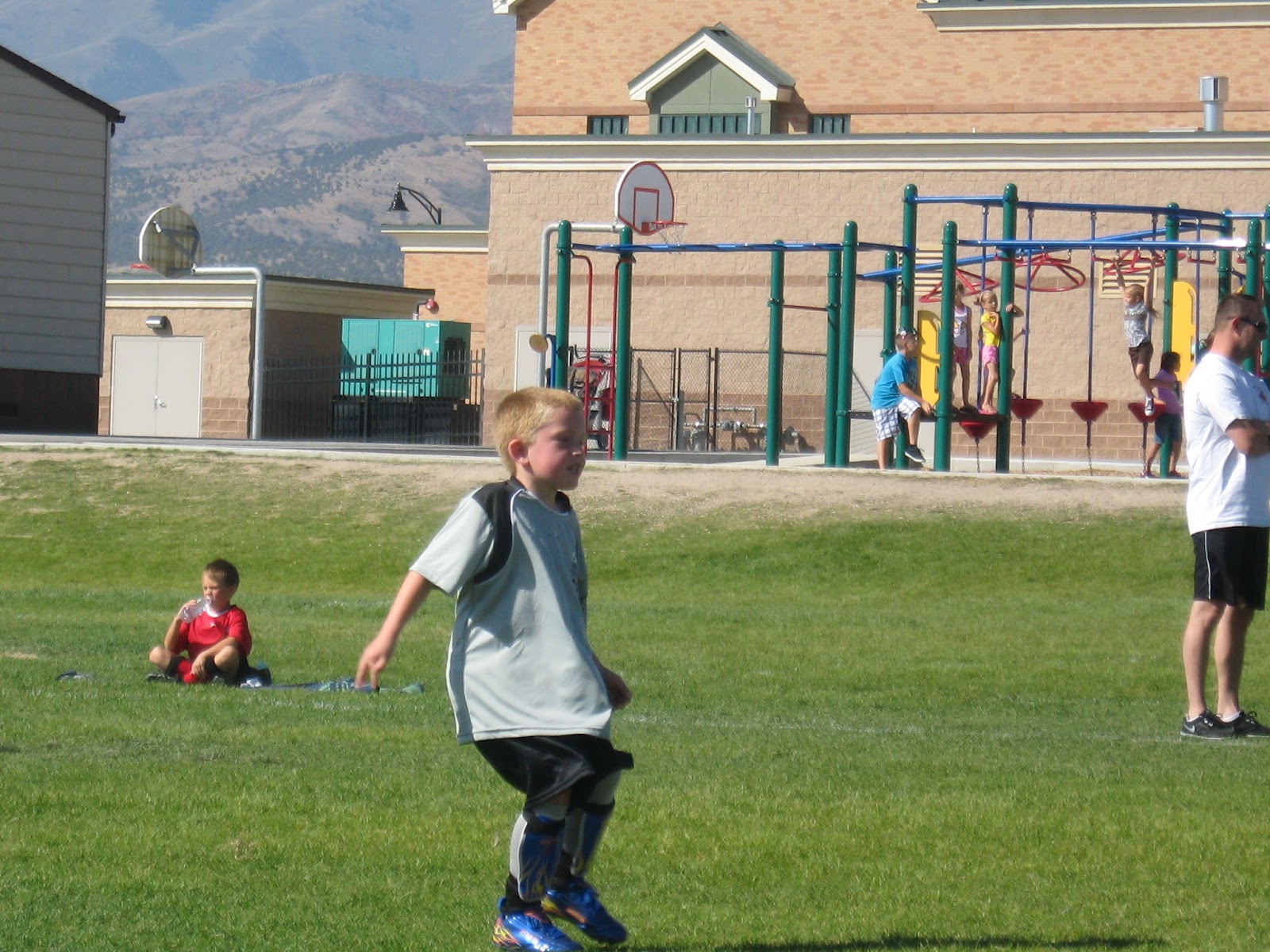I don't know if PJ is the sports fanatic or if it is his parents, but he is playing flag football and soccer this fall. That means he has two games during the week and two on Saturday. Today for instance, he had football at 9 AM and soccer at 11 AM. He did score a touchdown in the football game today which was fun.