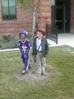 Indiana Jones (PJ) and Adrian Peterson (Trey) at school.