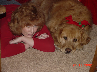 We got Boomer for free. His owner had about 10 puppies he had to get rid of and he wanted to do it fast. Boomer was very young when we got him, just barely weaned. JoAnn thought about giving him back, he cried so much. Even though his initial cost was cheap, he has been a very expensive dog. The first time we took him for a ride in the car, he jumped out when we were going about 30 mph. He was OK but it resulted in his first trip to the vet. He has a problem with allergies which manifests itself in ear infections. When his ears get infected, he scratches them. When he scratches them they bleed. Then he shakes his head violently and blood gets sprayed everywhere. Before we got this figured out, he had done so much damage to the ear, the vet tried at least twice to bandage the ear to his head so he couldn't flail it around. The bandage never lasted more than about 8 hours. Eventually, the vet had to put a piece of cardboard on it and stitch the ear to the cardboard.