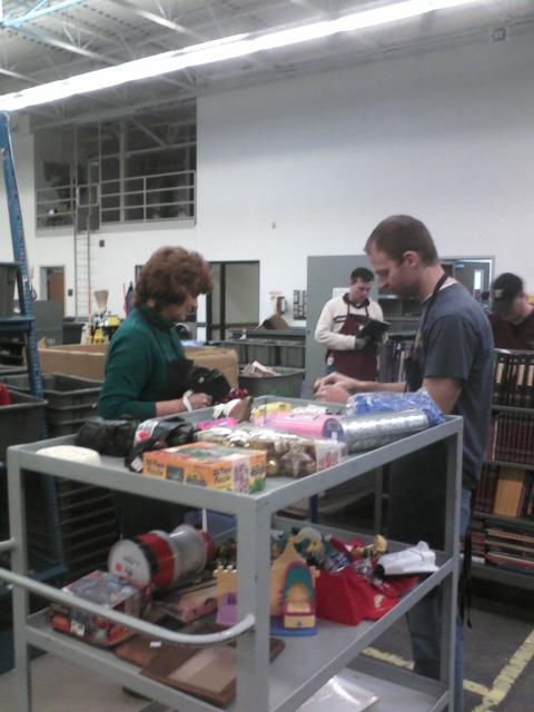 Another thing we did over the holidays was to volunteer to work at the West Jordan DI. We wanted to make it a family thing but everyone was busy except for JoAnn, Richie, and me. It's not bad work and goes pretty fast. Our job on this day was to put the price stickers on the "as is items" and put them on a cart. We would take them off of a shelve which is labeled with the amount the price should be. They are put there by someone on the other side of the shelve. I got to witness a manager and worker looking at items and debating their value. They did this to calibrate what shelve the worker put the item on.