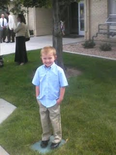 A couple of Sundays ago, PJ was with us on Sunday and, just by chance, it was the ward primary program. PJ only comes to church with us about once a month so we didn't know if he'd want to be involved or not. He actually wanted to get up on the stand with his class and sing the songs (he didn't seem to be doing much singing). The primary even gave him a part to say. As the primary president whispered in his ear, he spoke loudly and clearly. He was especially happy when JoAnn told him how much better he did than Richie oh those many years ago. When JoAnn whispered in Richie's ear, he would whisper in the microphone. PJ thought it was quite funny.